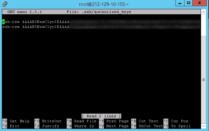 在此示例中,我们使用root账户,因此文件路径为/root/.ssh/authorized_keys。