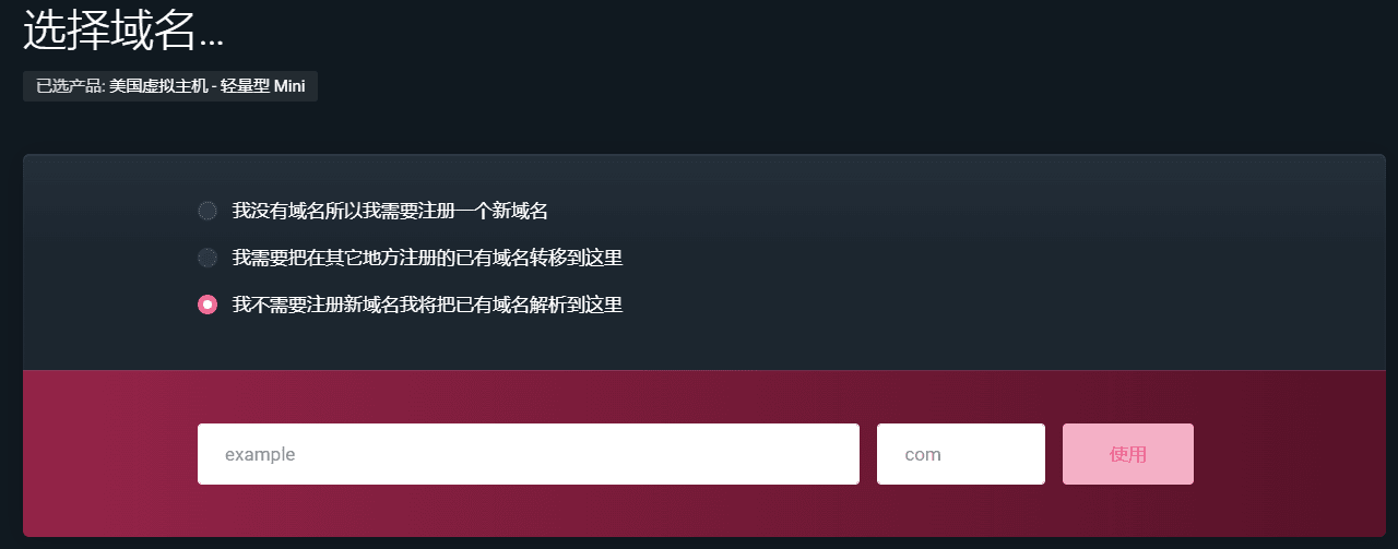 选择好之后点击对应型号下的【购买】,跳转到选择域名页面。