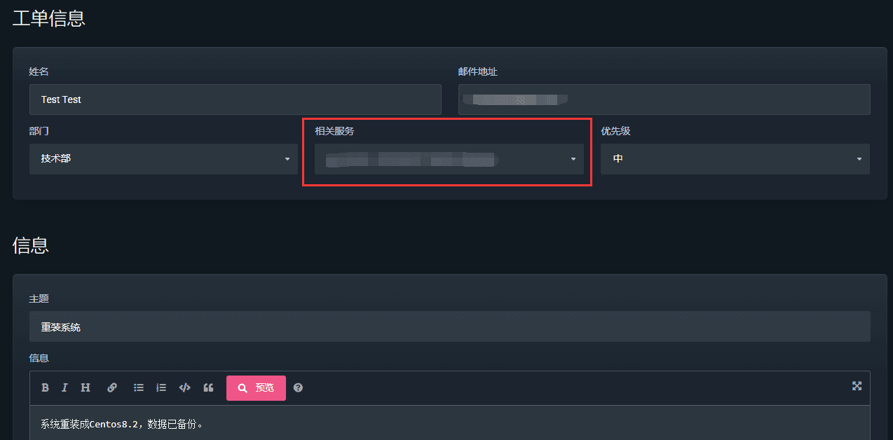2、选择相关服务器,阐述您的需求,如重启、重装系统等,如下图。点击提交,我们技术部门收到工单后会实时跟进处理您的需求。