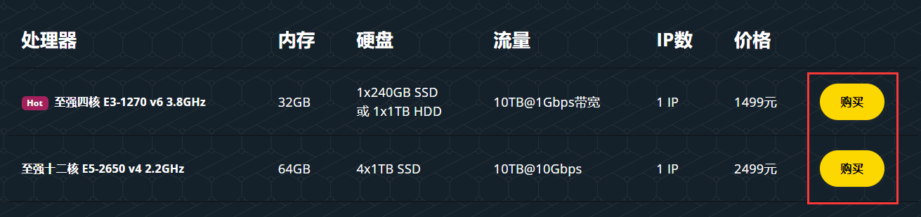 选择需要的日本服务器分类直接点击,然后选择要购买的产品点击【购买】,跳转到产品配置页面。