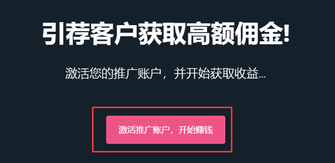 2、在激活推广账户页面,点击【激活推广账户,开始赚钱】,即可激活激活推广账户,跳转到用户推广页面。