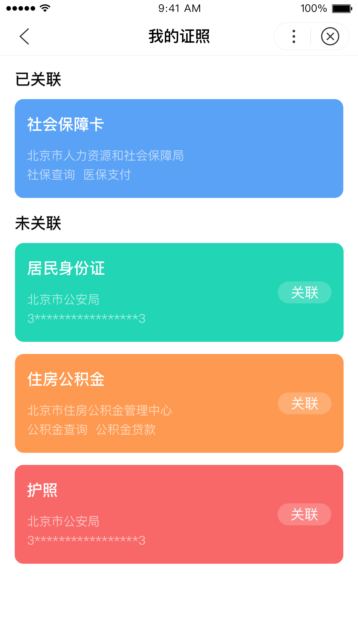 包含电子证照列表页和电子证照详情页,证照列表页中可展示用户已关联和未关联的证照,证照详情页中可展示具体证照信息及与此证照相关的服务项。