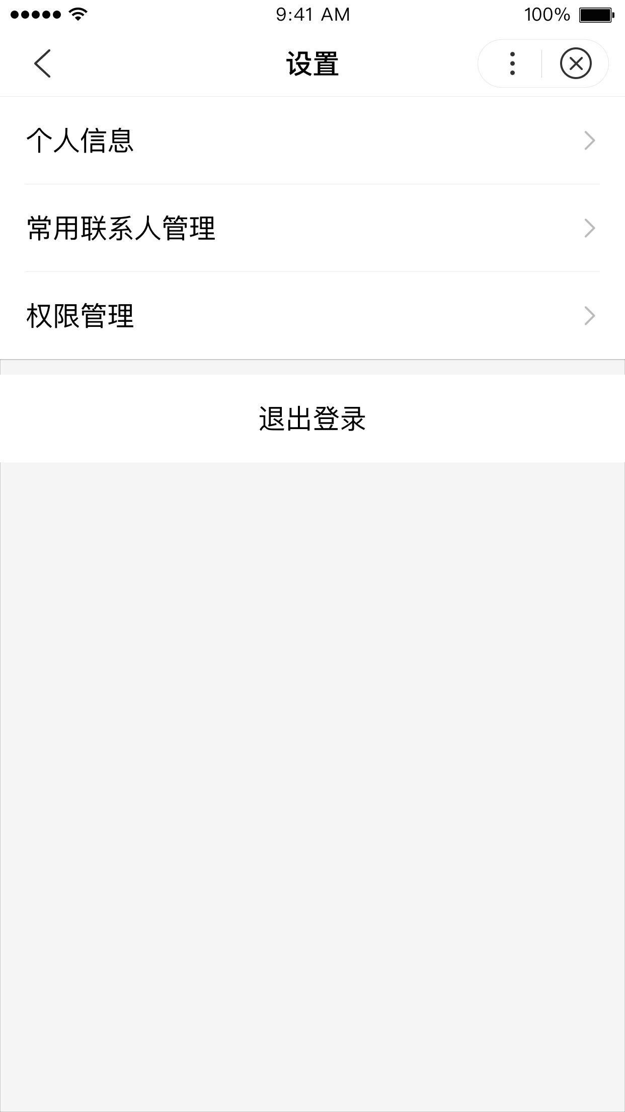 为用户提供常用的个人设置相关功能,如个人信息、常用联系人管理、权限管理、退出登录等。