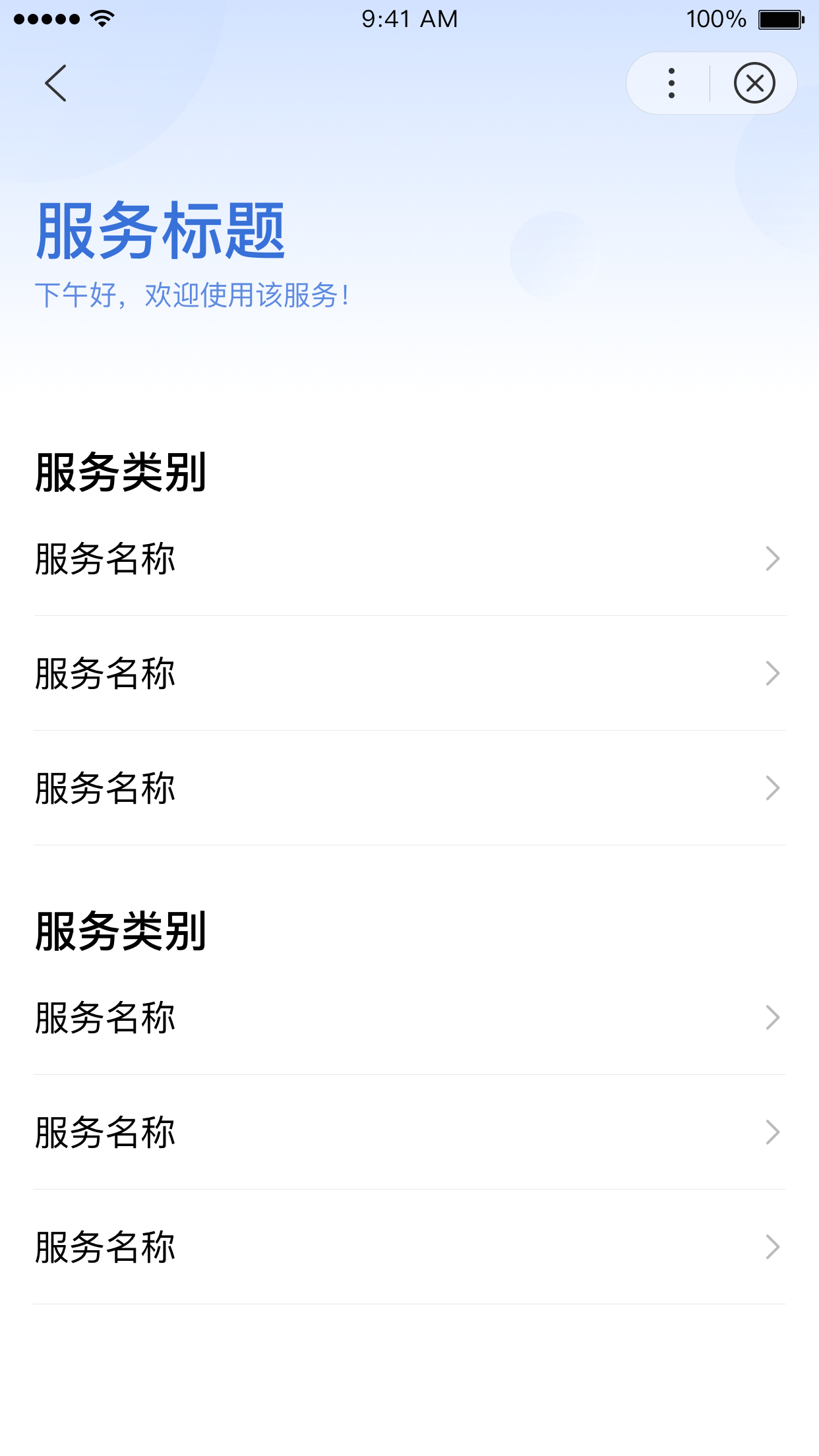 展示某一服务分类下的具体服务项,页面中包含二级分类可进一步对服务项进行分类。