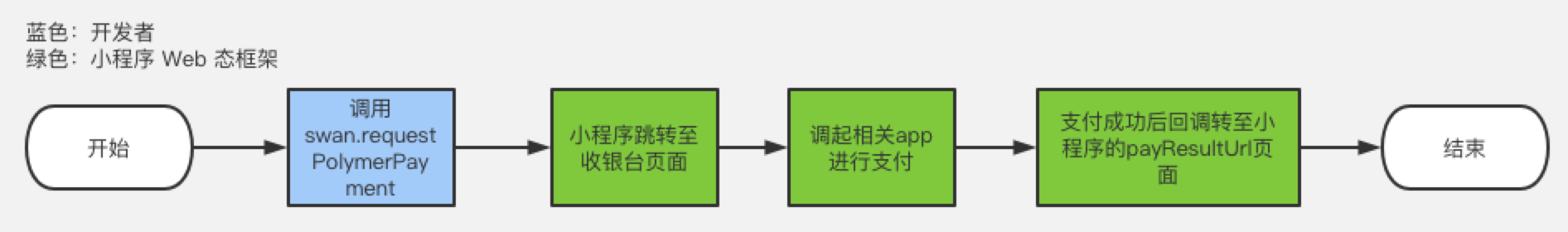 如图,由于在 Web 态存在页面跳转的过程,原调用 API 的页面的 JS 上下文状态会丢失,支付完成不会触发该 API 的 success 或者 fail 回调函数(仅在参数校验失败时会触发 fail 回调),因此开发者需要在结果页( orderInfo.payResultUrl 所指定的页面)做好支付状态检测。